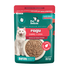 Sachê Pet Delicia Ragu Para Gatos Carne Com Chia 80g
